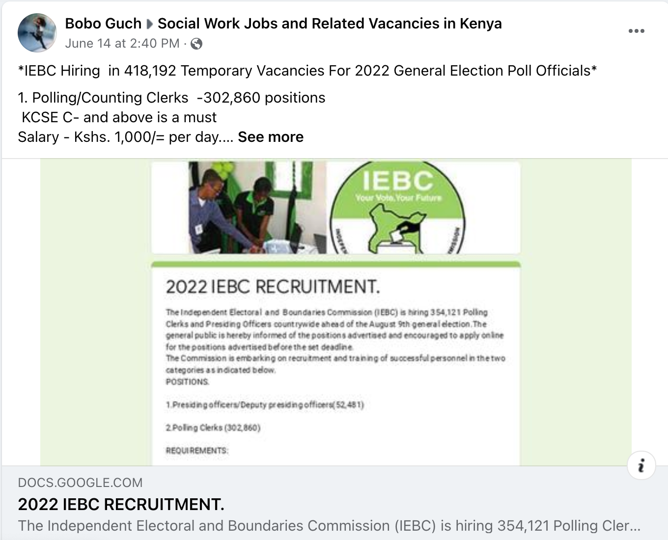 Hoax This Job Alert Purportedly By The Kenyan Electoral Commission Is A Scam By Pesacheck Pesacheck